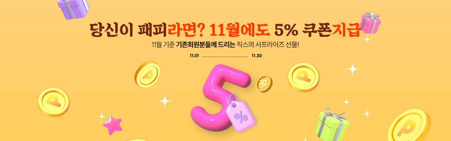 [11월] 기존회원 5% 할인 쿠폰 드려요!