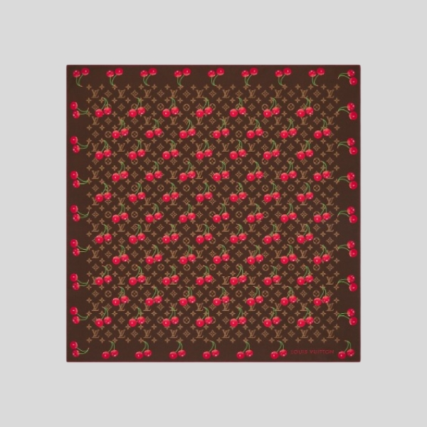 루이비통 체리 스퀘어 스카프 커피 레드