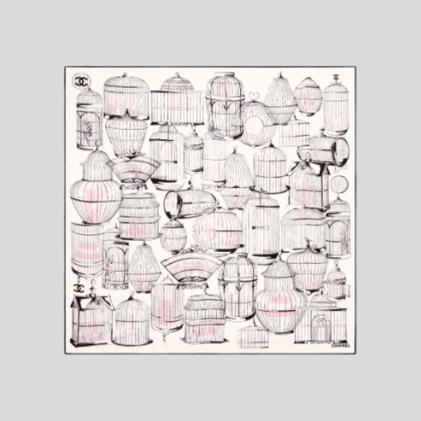 샤넬 버드케이지 스카프 베이지