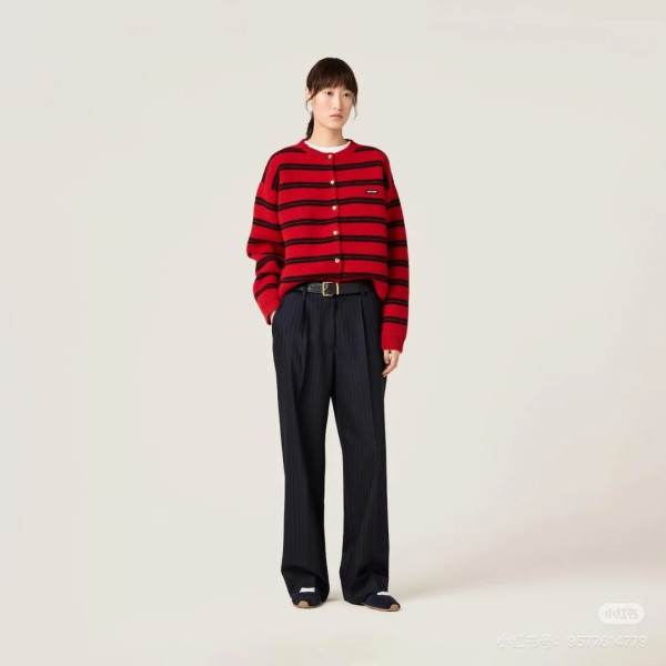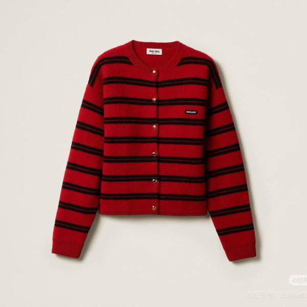 미우미우 레드 블랙 스트라이프 가디건