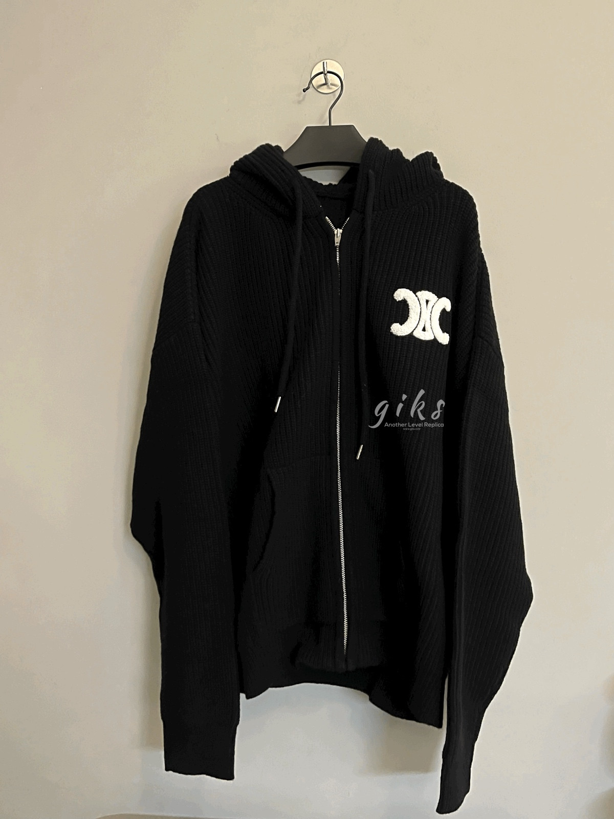 셀린느 아플리케 울 후드 집업