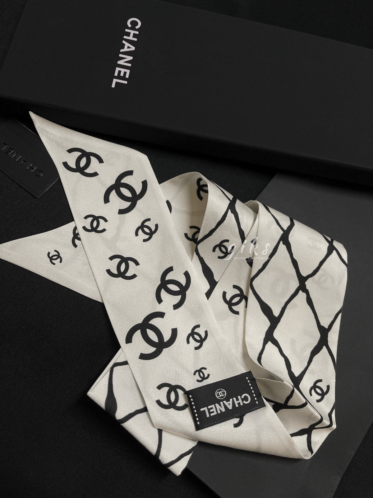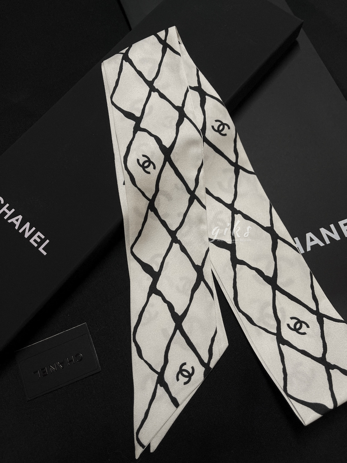 샤넬 슬림 방도 실크 트윌 (화이트,블랙)