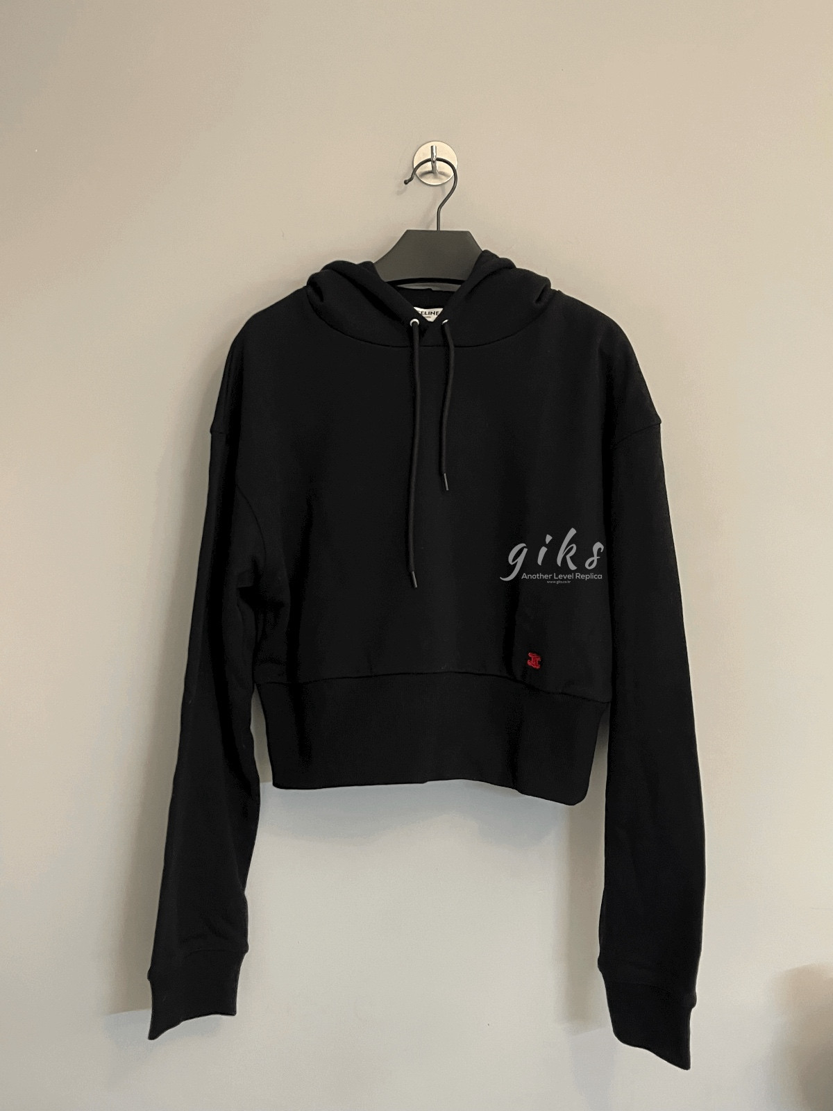 셀린느 코튼 플리스 크롭 후디