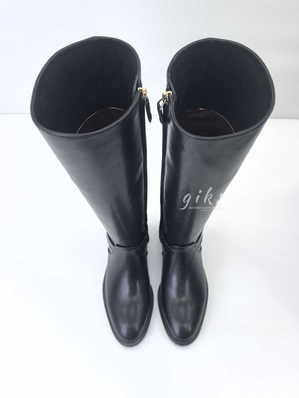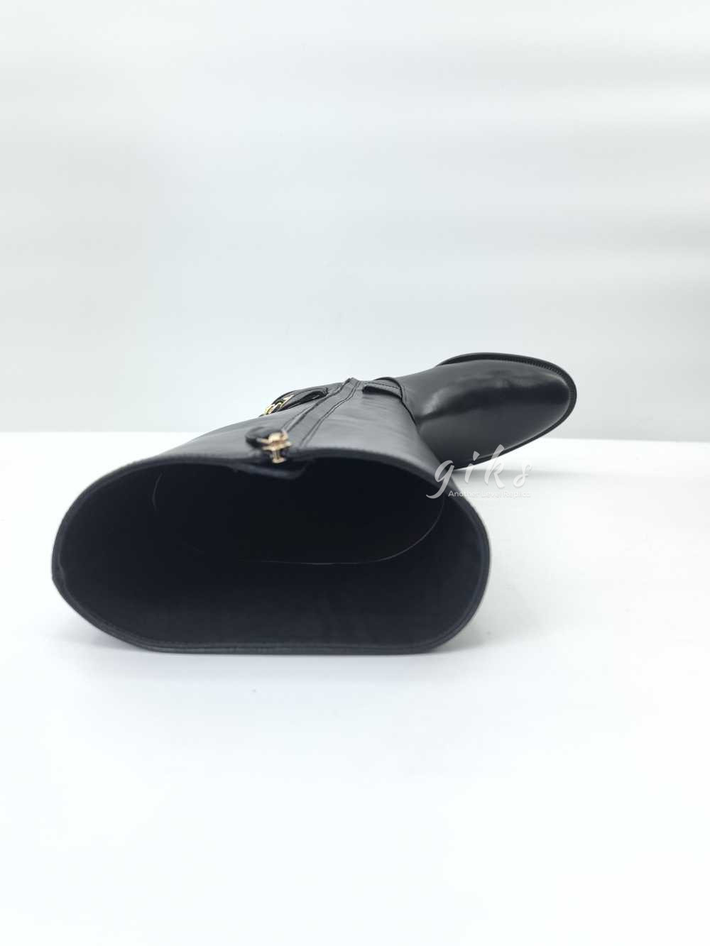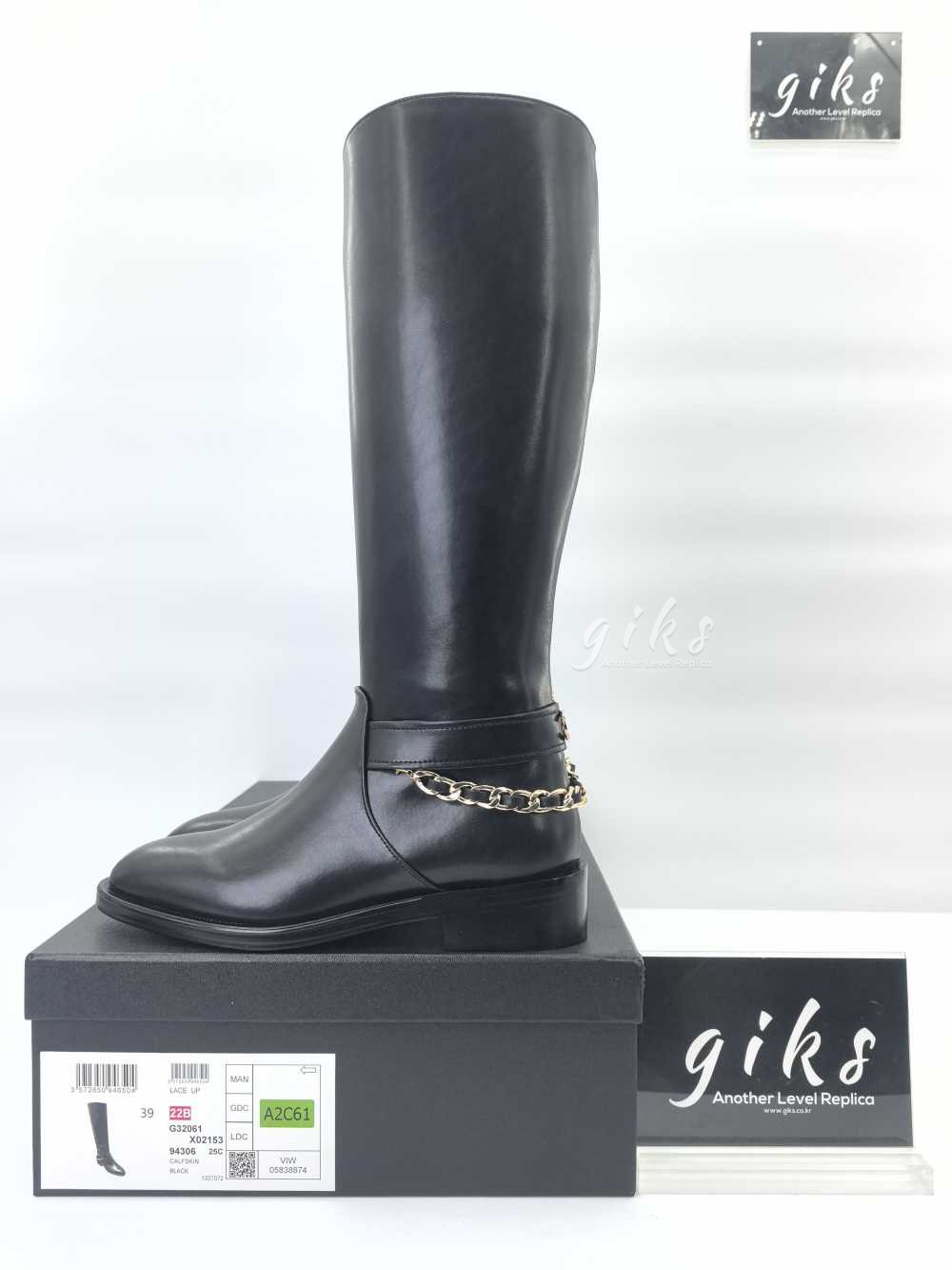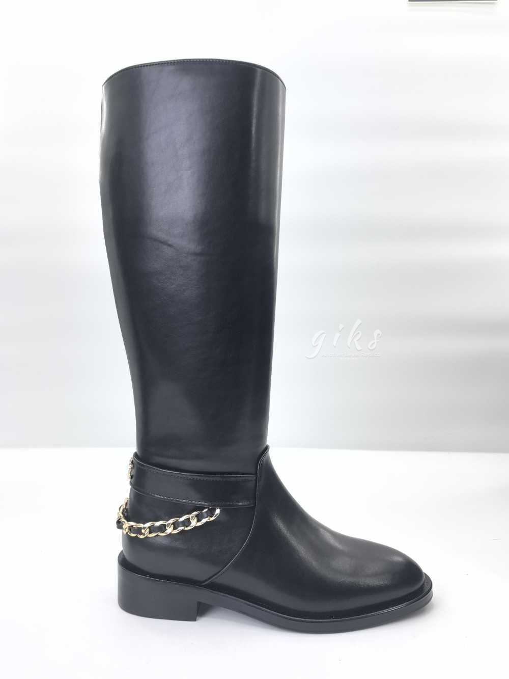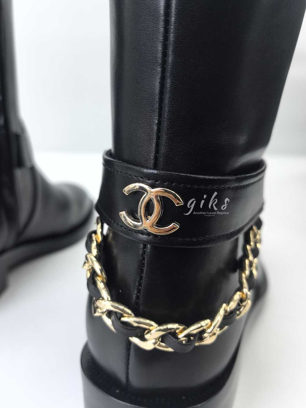 샤넬 하이 부츠 카프스킨 골드 메탈 & 블랙