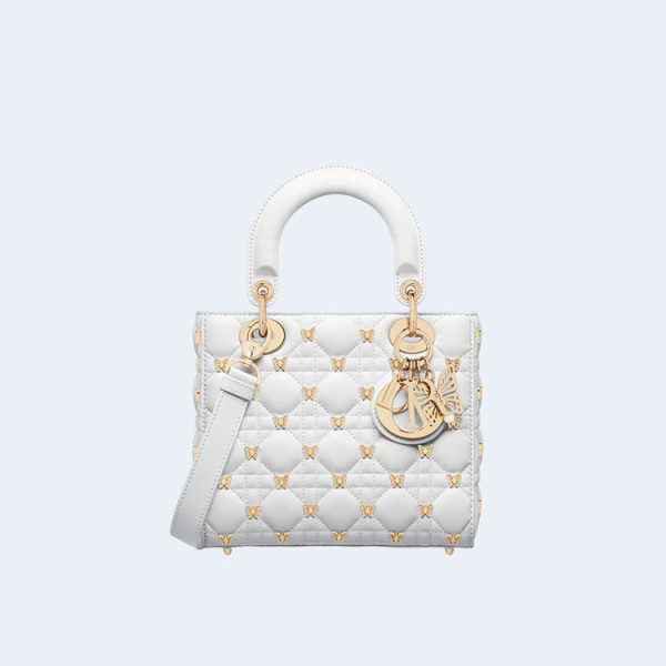 디올 레이디 나비 스터드 스몰 백 화이트