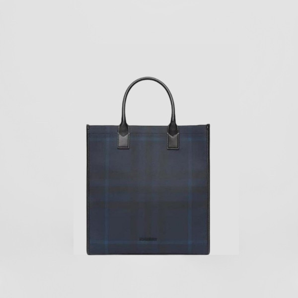 버버리 체크 레더 미디엄 토트백