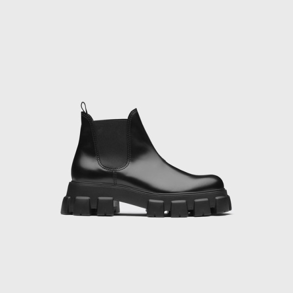 프라다 모놀리스 브러시드 가죽 첼시 부츠