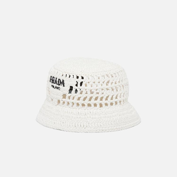 프라다 우븐 패브릭 화이트 버킷 햇
