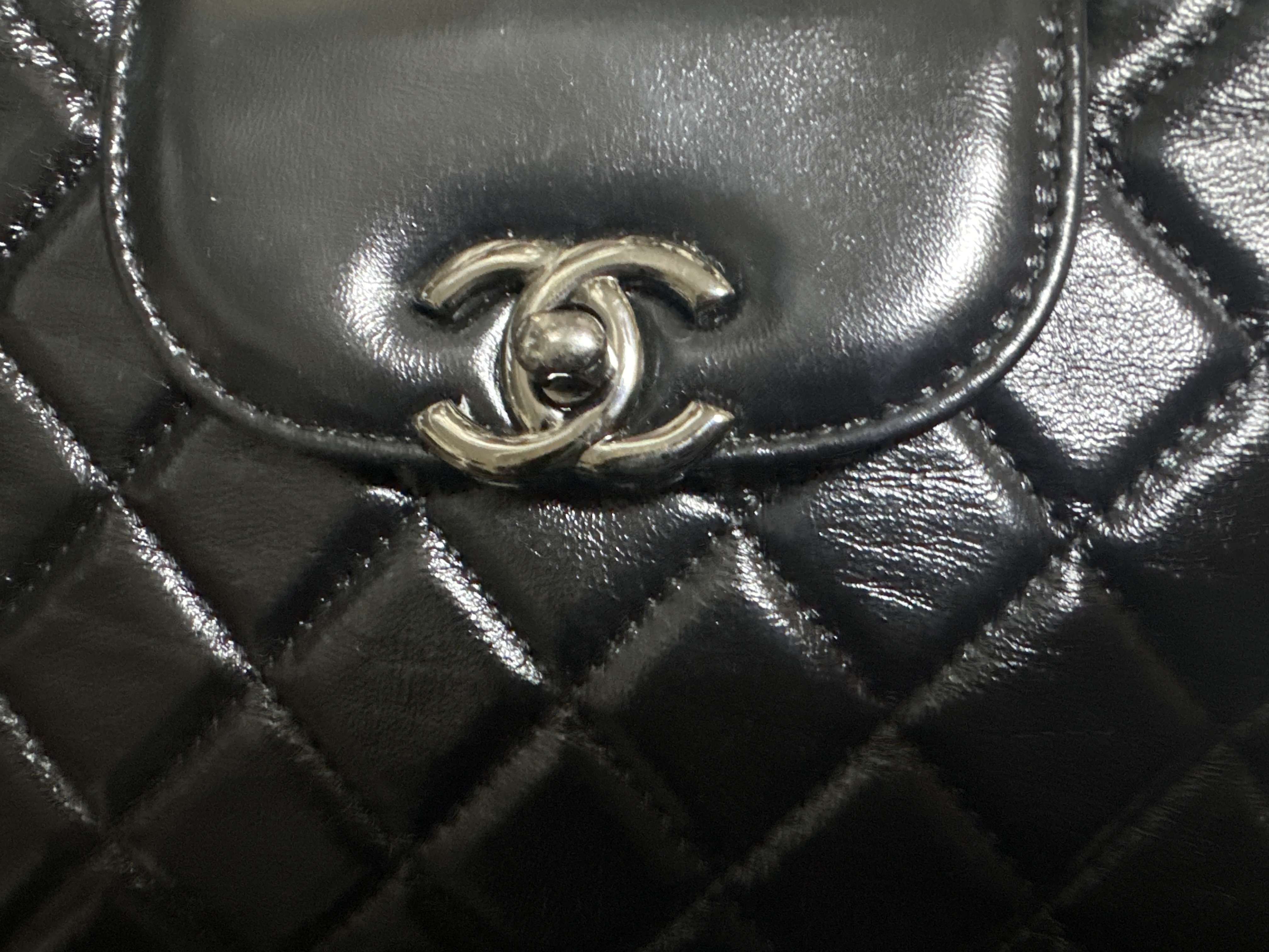 샤넬 클래식 뉴미니 램스킨 블랙 실버
