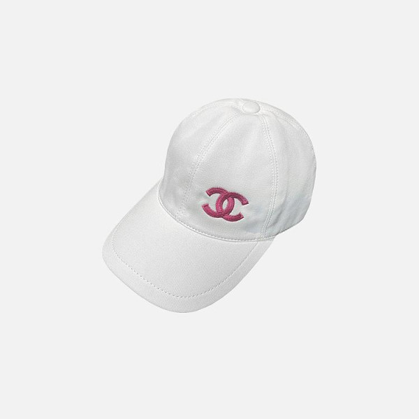 샤넬 로고 자수 화이트 베이스볼 캡