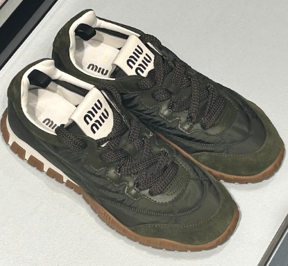 미우 미우 타이어 테크니컬 패브릭 앤 스웨이드 스니커즈 로든 그린 > MIU MIU