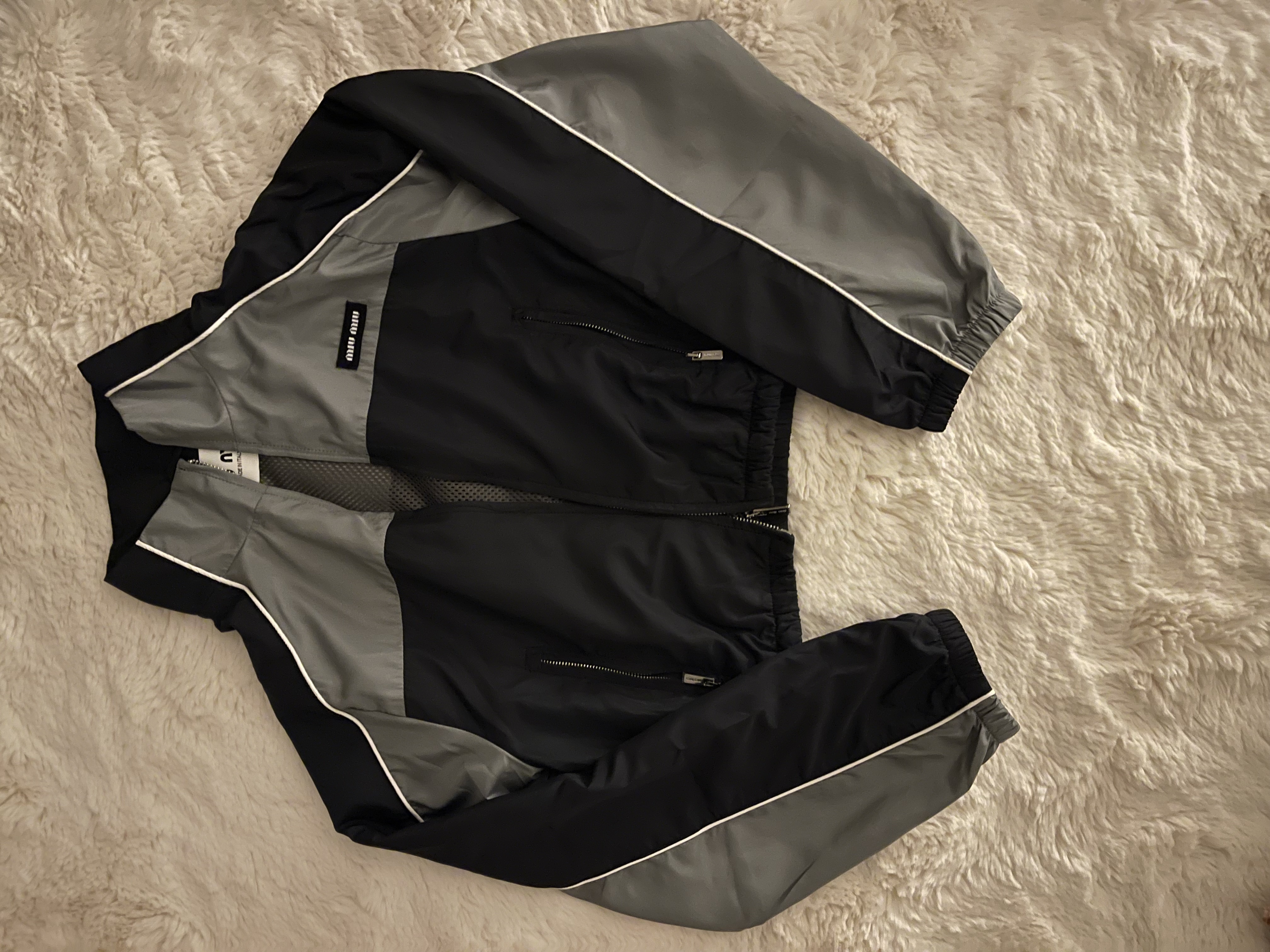 미우미우 테크니컬 실크 지퍼 블루종 자켓