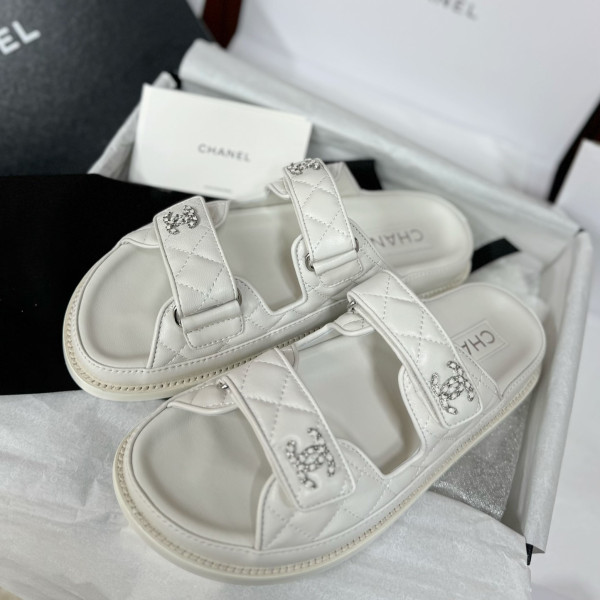 샤넬 CC로고 벨크로 뮬 샌들 슬리퍼 화이트