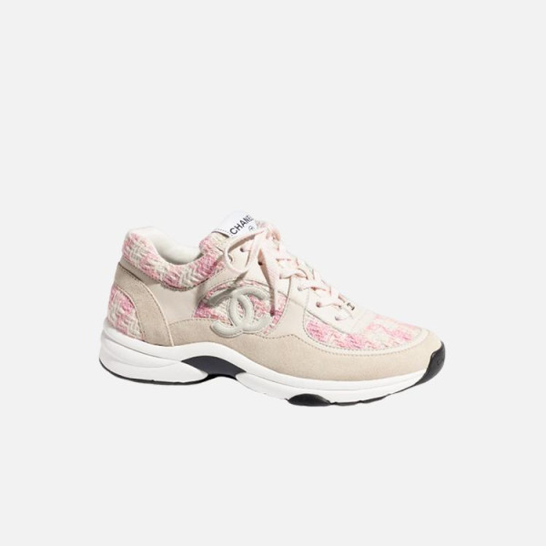 샤넬 CC 로고 트위드 스니커즈 핑크
