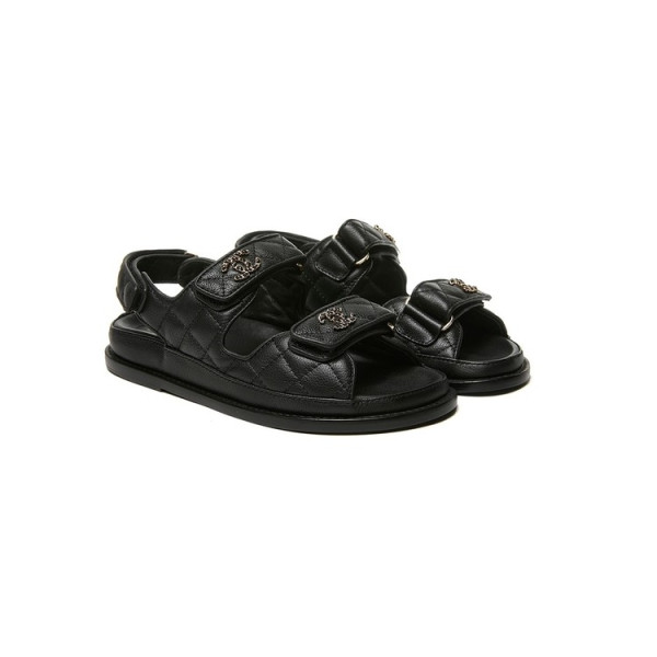 샤넬 CC 로고 벨크로 블랙 샌들