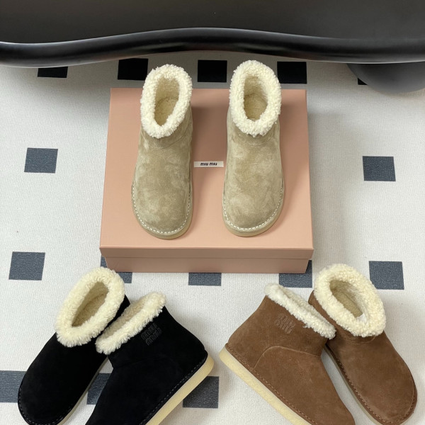 미우미우 신상 스웨이드 통굽 앵클부츠