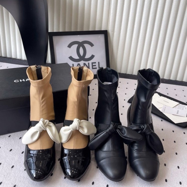 샤넬 25 신상 통굽 리본 앵클부츠