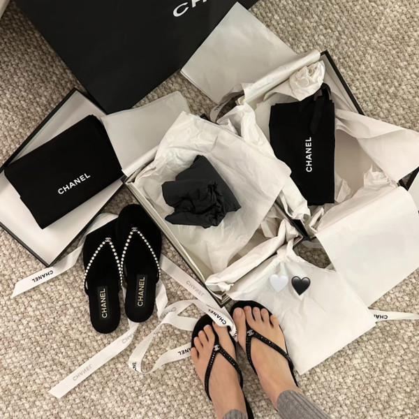 샤넬 25C 봄여름 신상 진주 벨벳 조리 > CHANEL