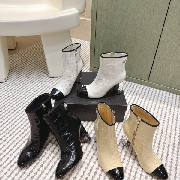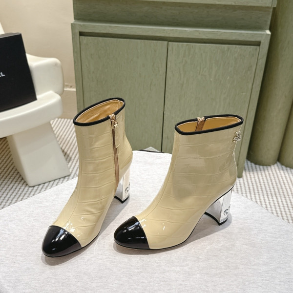 샤넬 투톤 배색 앵클부츠