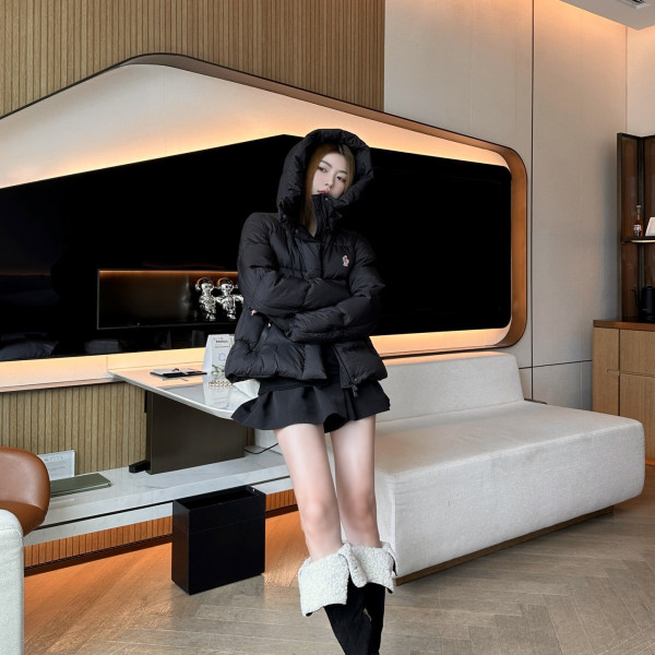 미우미우 25Fw 신상 로고 슬림 후드 패딩