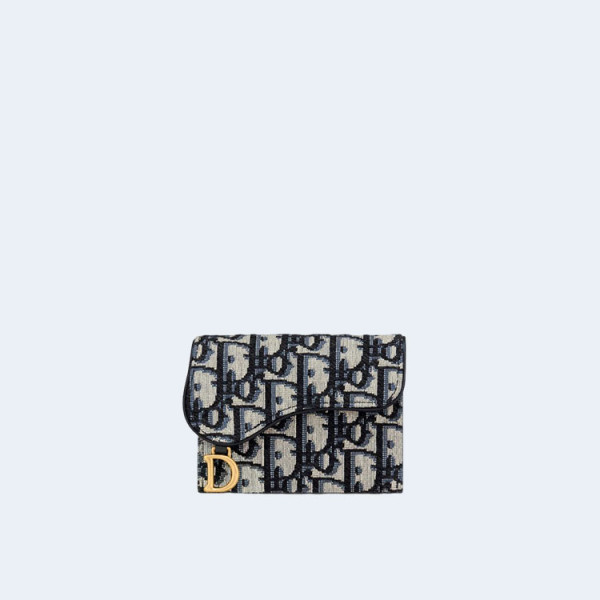 디올 오블리크 자카드 새들 지퍼 장지갑