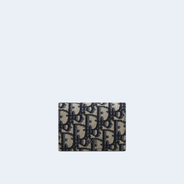 디올 오블리크 자카드 카드 지갑 베이지
