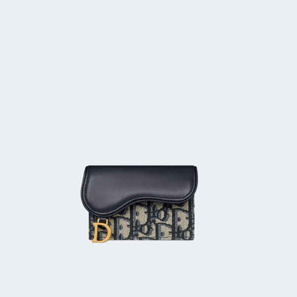 디올 오블리크 새들 플랩 카드 지갑 블랙