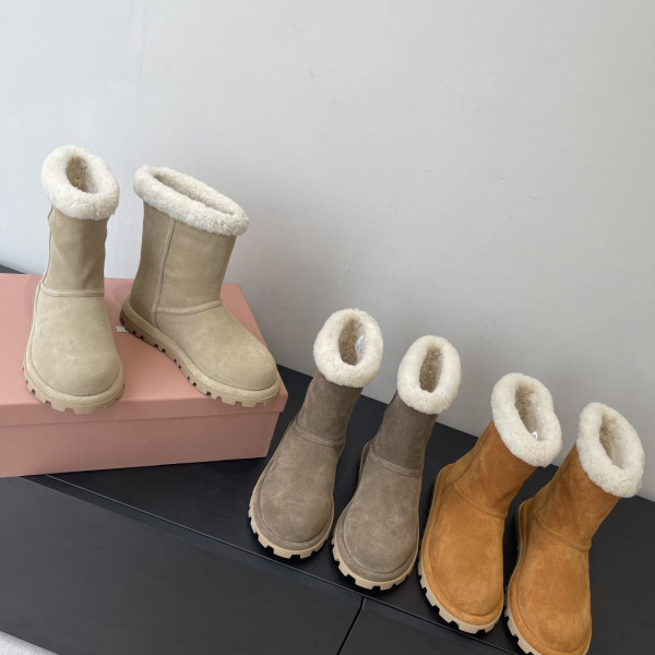 미우미우 통굽일자 양털부츠