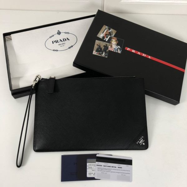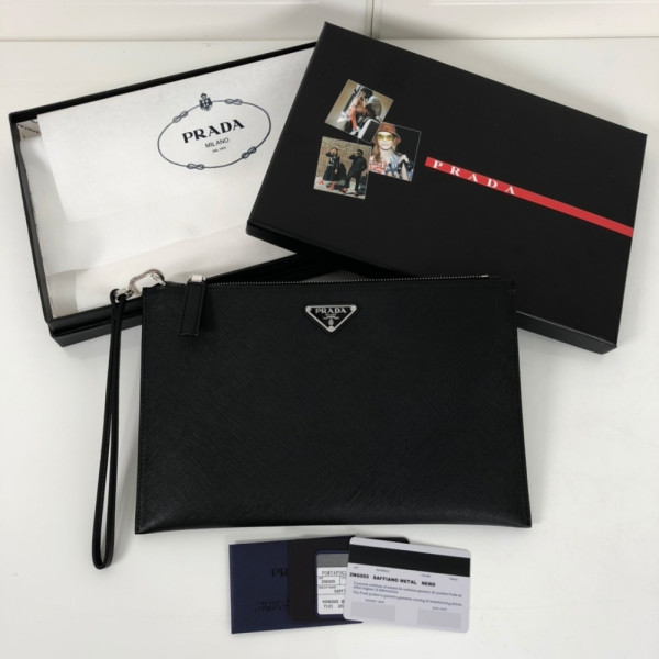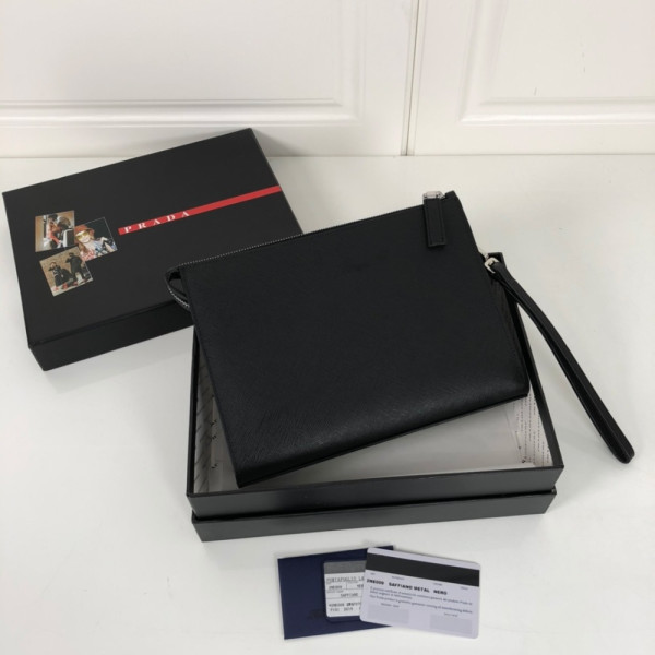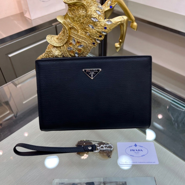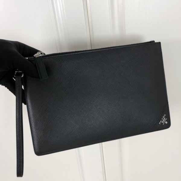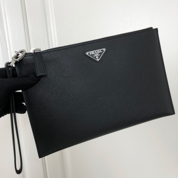 프라* 사피아노 삼각 로고 가죽 클러치 2NG005
