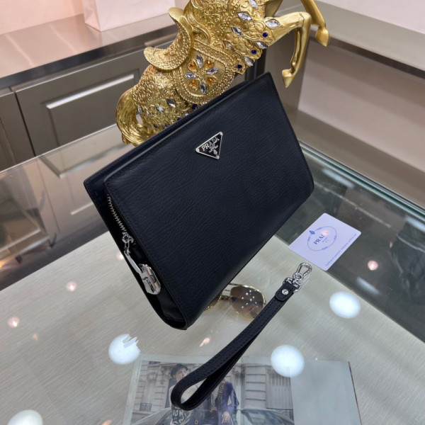 프라* 사피아노 삼각 로고 가죽 클러치 2NG005