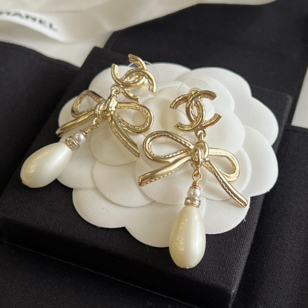 샤넬 신상 리본 진주 더블C 귀걸이