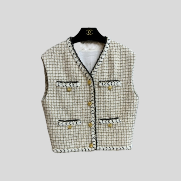 샤넬 체크 트위드 베스트