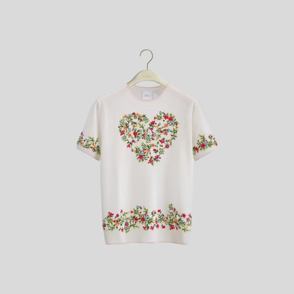 디올 숏 슬리브 엠브로이더드 스웨터
