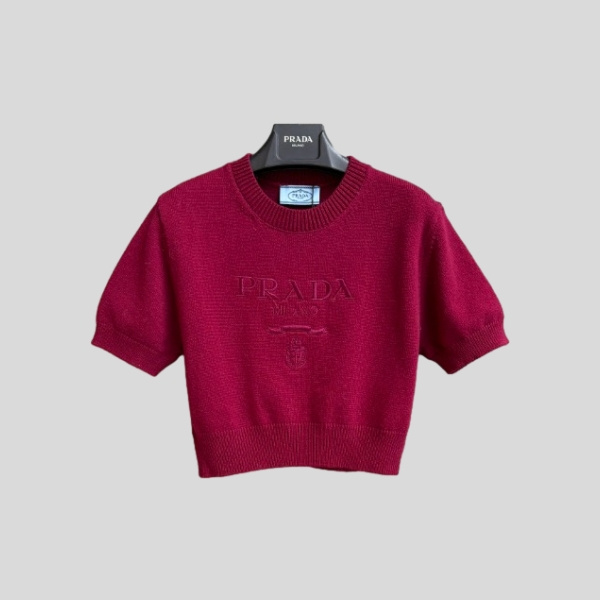 미우미우 레드 울 반팔 티셔츠
