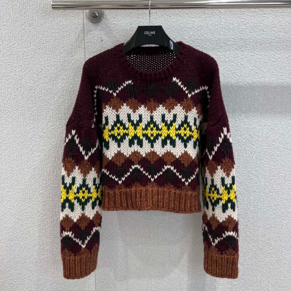 셀린느 25Fw 신상 자카드 숏 울 니트 스웨터