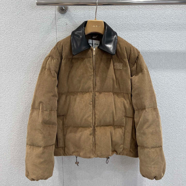 미우미우 25 신상 코듀로이 가죽 넥 패딩 점퍼