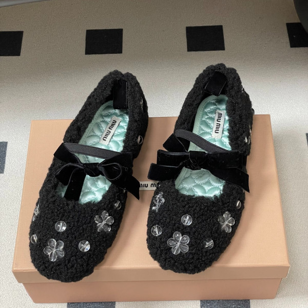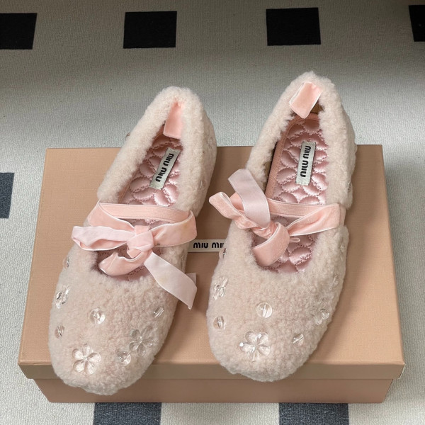미우미우 리본 메리제인 양털 발레화