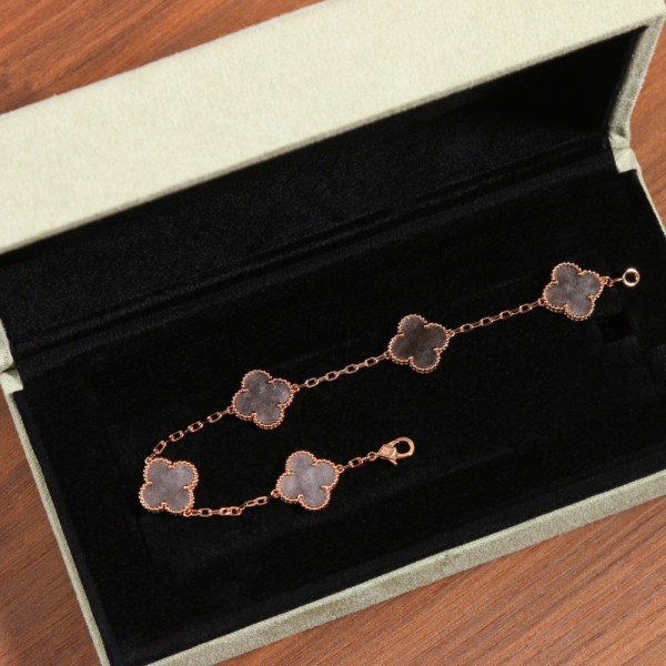 반클리프 Arpel* VVIP 리미티드 5모티브 빈티지 알함브라 실버 옵시디언 팔찌 브레이슬릿