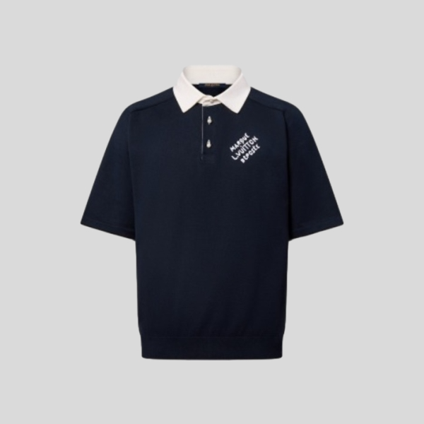 루이비통 자수 반팔 코튼 블렌드 폴로 셔츠