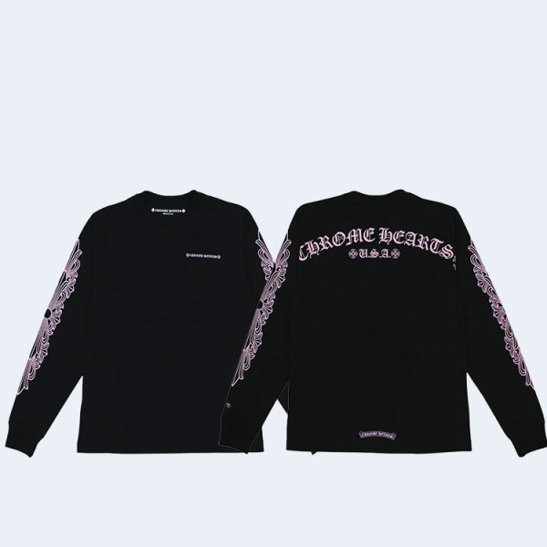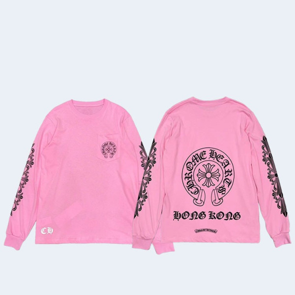 크롬하츠 핑크 로고 롱 슬리브 티셔츠(2color)