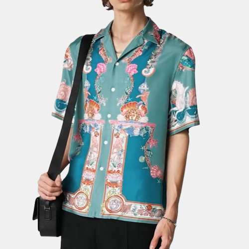 베르사체 코랄 극장 프린트 실크 셔츠