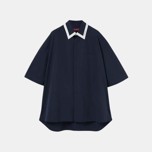 구찌 코튼 팝린 네이비 반팔 셔츠