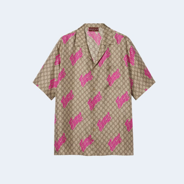 구찌 프린트 실크 트윌 볼링 반팔 셔츠