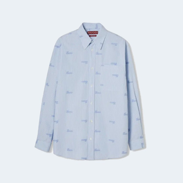 구찌 자수 스트라이프 코튼 셔츠