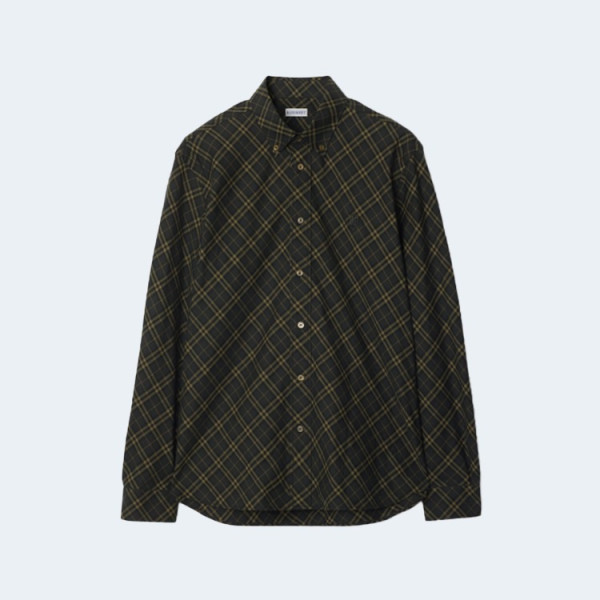 버버리 카키 체크 코튼 셔츠