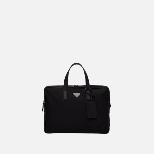 프라다 리나일론 및 가죽 브리프케이스