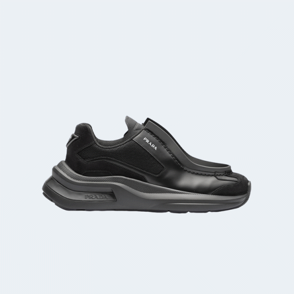 프라다 패널 가죽 청키 스니커즈 블랙