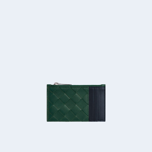 보테가 베네타 인트레치아토 지퍼 카드 케이스 그린 스페이스