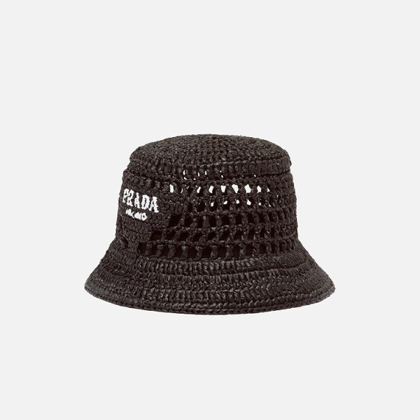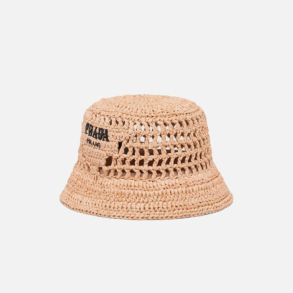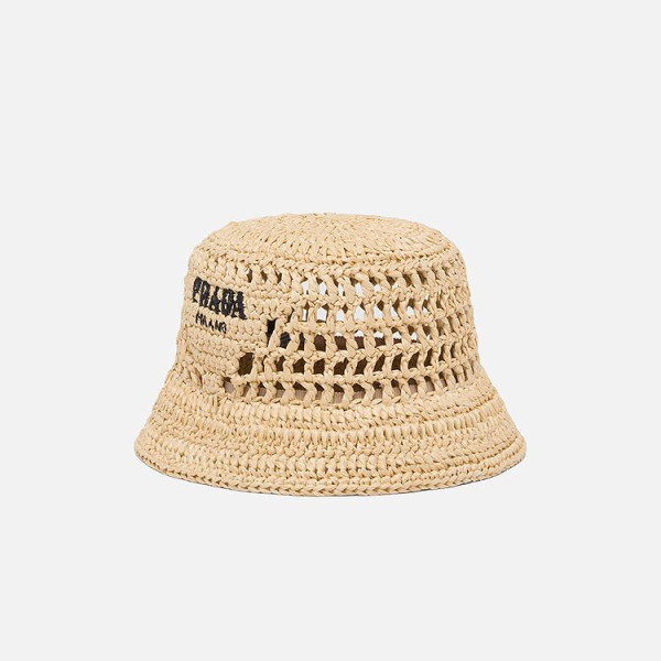 프라다 우븐 패브릭 내추럴 버킷 햇