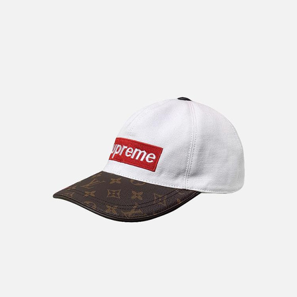 루이비통 X 슈프림 화이트 로고 베이스볼 캡